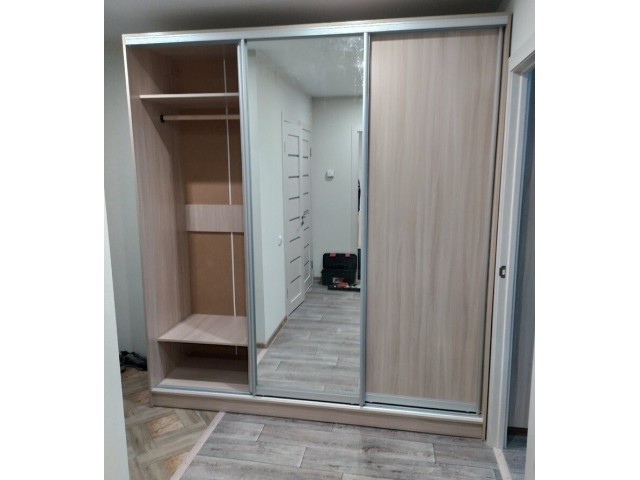 Фасад (двери): 2 двери ЛДСП, 1 дверь зеркало (профиль серебро)